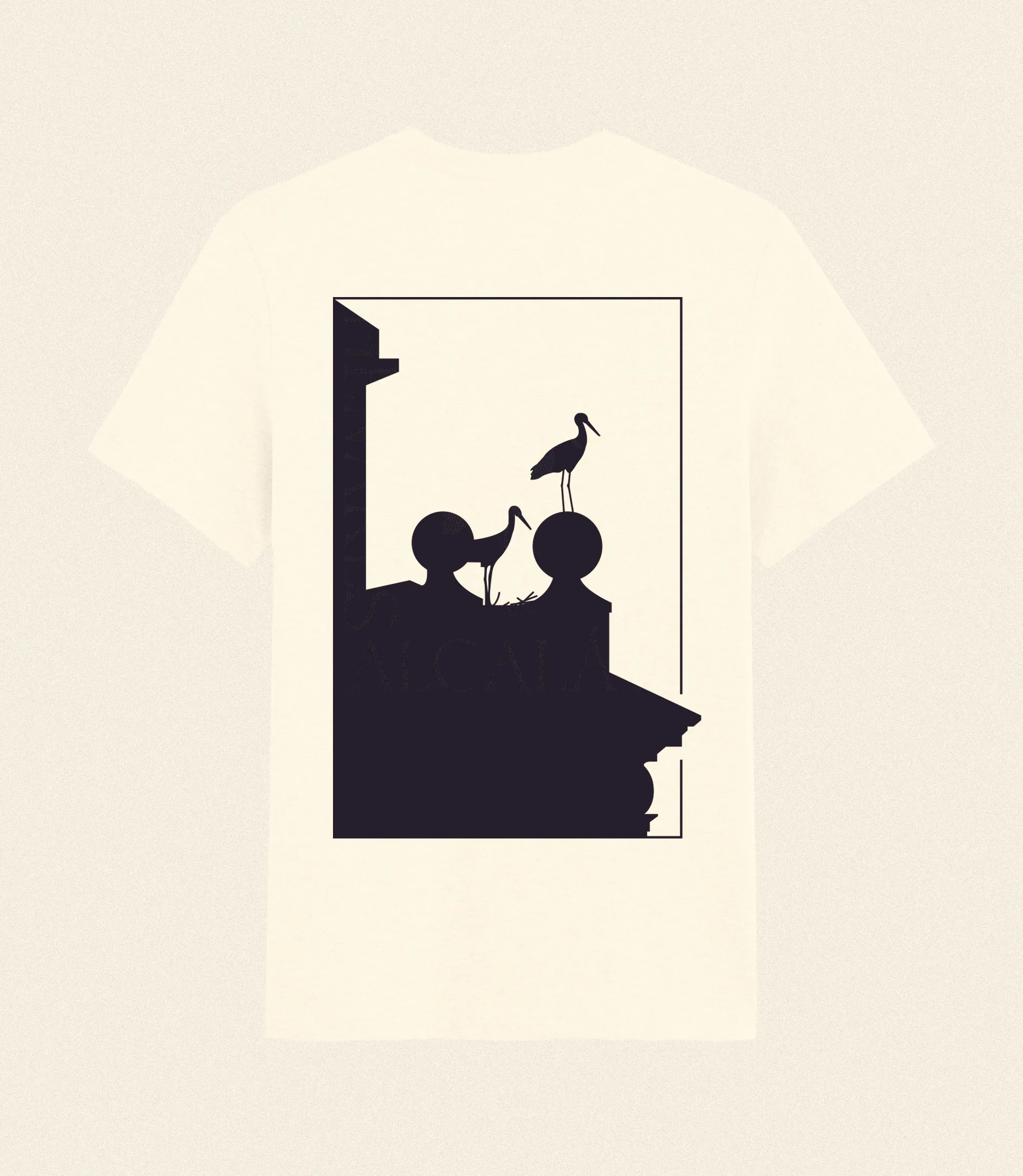 Siluetas de cigüeñas sobre beige. Un homenaje sencillo y elegante al animal de Alcalá.